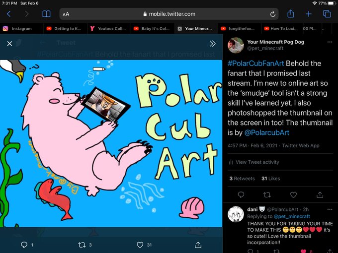 #PolarCubFanArt Behold the fanart that I promised last stream. I’m new to online art so the ‘smudge’ tool isn’t a strong skill I’ve learned yet. I also photoshopped the thumbnail on the screen in too! The thumbnail is by @PolarcubArt