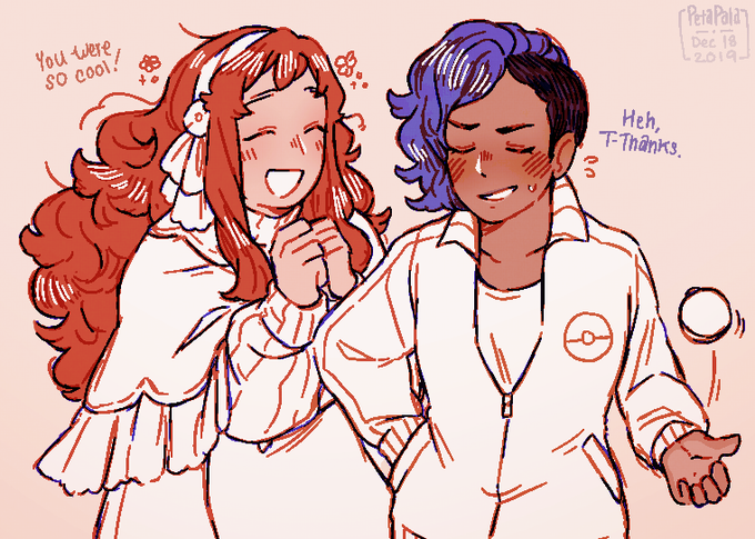 [PKMN] euna sees anyone who isn't from the sticks and thinks they're super cool, especially trainers from other regions. featuring @laserlime's darya because i think they're neat and so does euna.