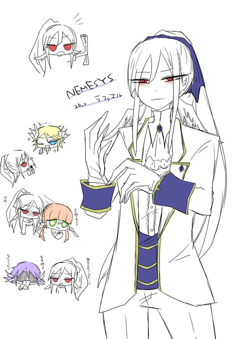 NEMESYSのスタッフ2人のキャラデザらくがき ラファエルとマスティマ