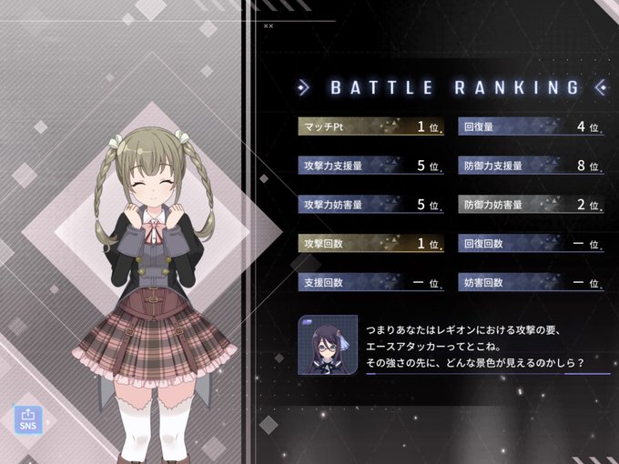 4日目は勝利です!たいありでしたー! 今日は9人揃ったのもあり、思ったよりスコアも稼げました。 支援の要だそうです!