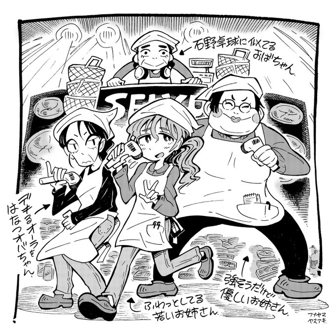 過去絵(よく行ってたSEIYUのレジにいるお姉さんたちを妄想でアイドル化したやつ)