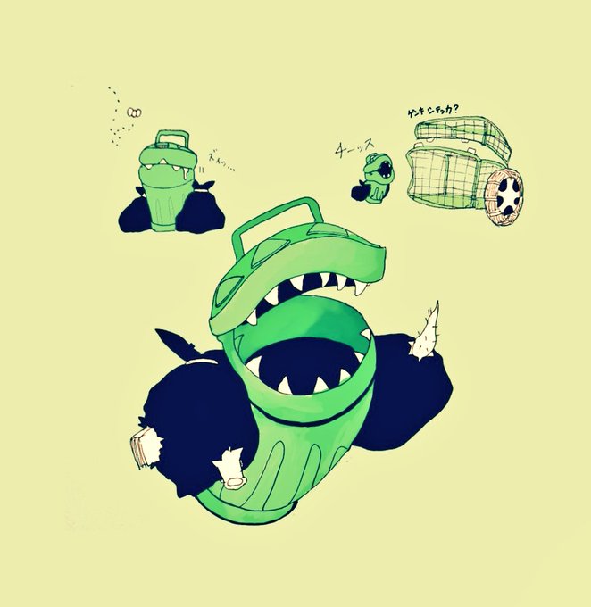 【ミミック】 ポリバケミミック(+回収箱先輩) #人外版深夜の真剣お絵描き60分一本勝負