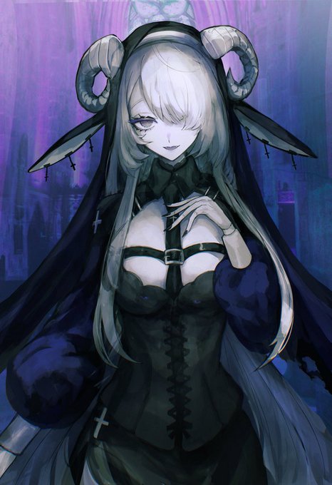 悪魔×修道女×七つの大罪×ケモ耳×白肌×モノトーン×紫