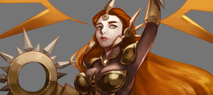 궁극기합작에 레오나로 참여했습니다 ㅇ0ㅇ 걍 얼굴 작게보여서 아쉬워서 크롭 올려보는 ㅋㅋㅋㅋㅋ 다른분들 멋진 그림을 보시려면 여기로! https://t.co/0DP8i3zpdS