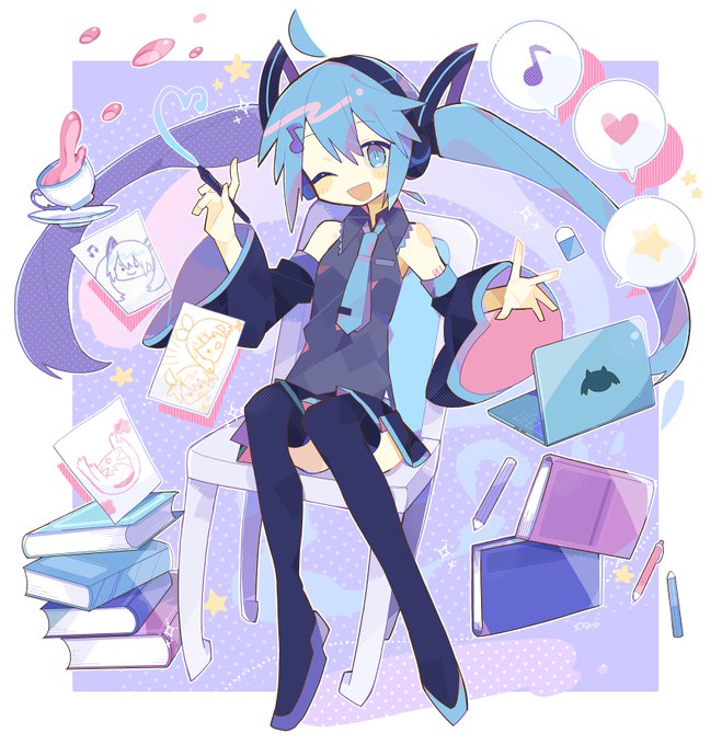 ピアプロ運営です。本日は「ウインク」作品をご紹介!初白まみむさんのイラストを描くミクさん!🖊本やカップがふわふわしていて魔法のようですね!デザインもとっても可愛いです!(*´艸`*)💕【https://t.co/NzE7EMMABC】 #piapro #初音ミク