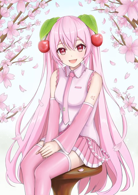 ア行さんのミクさん!桜を思わせる桃色の輝きとコントラスト、とても綺麗でステキですね…!(*´▽`*)【https://t.co/9NKWFhL5nz】 #piapro #初音ミク