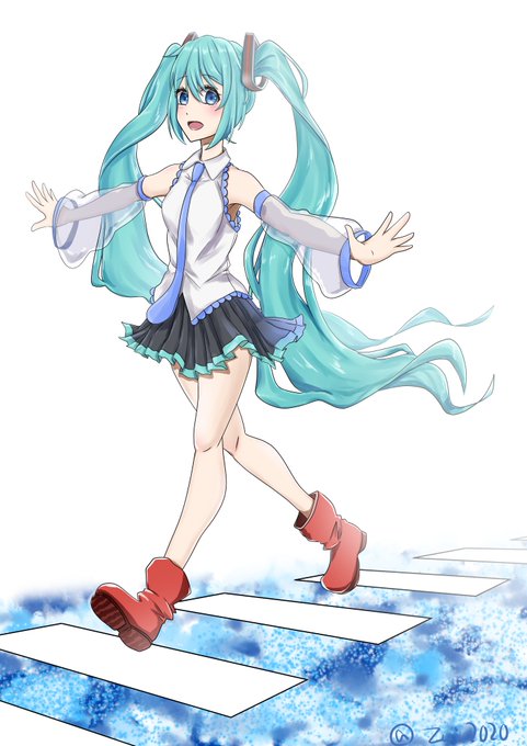 今日は #靴の記念日 !という事で瑞さんの作品をご紹介!オシャレな長靴を履いて横断歩道を歩くミクさん♪ルンルンと楽しそうに歩く姿が良いですね(*´▽`*)【https://t.co/OH00tqO1PW】 #piapro #初音ミク