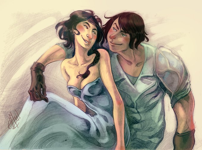 Had these characters since 14 so I'm deeply fond of them, I hope I'll be able to start their project after finishing AWIW. This is also the first time anyone other than me has drawn Mal (here's some other art of Aleta I've bought over the years! by telokaberry and flee_bites)
