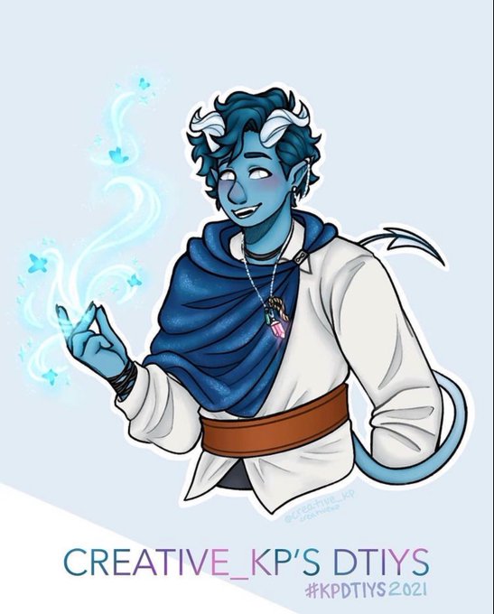 @rose_creativekp has a wonderful #dtiys going on their insta! It’s of their OC River and he is a beautiful Blue teafling. I had so much fun drawing this! Hope u guys like it. #artistsontwitter #dndartists #Procreate #digitalart