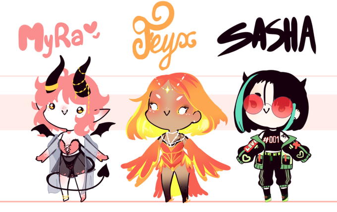 Let me introduce you Myra the ace succubus, Feyx the phoenix divinity and Sasha the streetwear lost child.