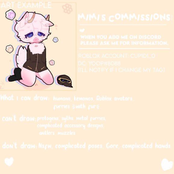 ^-^ hello! I changed my commission board alot!! Please read if u want to commission me! 🌸 #robloxcommission #furry #furryart #roblox #goat #cute #aesthetic #furrycommission #artwork #artcommissions #commissionsopen #commissionboard #board #tags