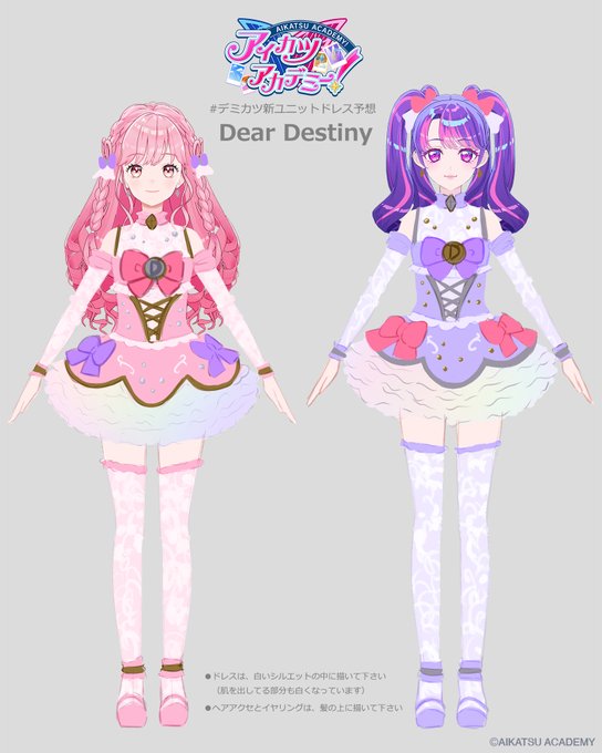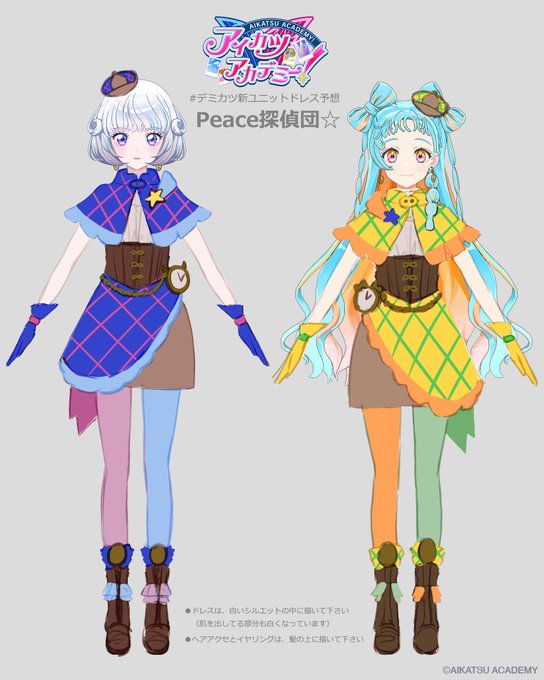 Dear Destinyはバレリーナをイメージして、Peace探偵団☆はスチームパンクっぽい要素を連想して。 ドレスデザインとか全然やったことなかったけど、シルエットから考えるの楽しかったです! #デミカツ新ユニットドレス予想