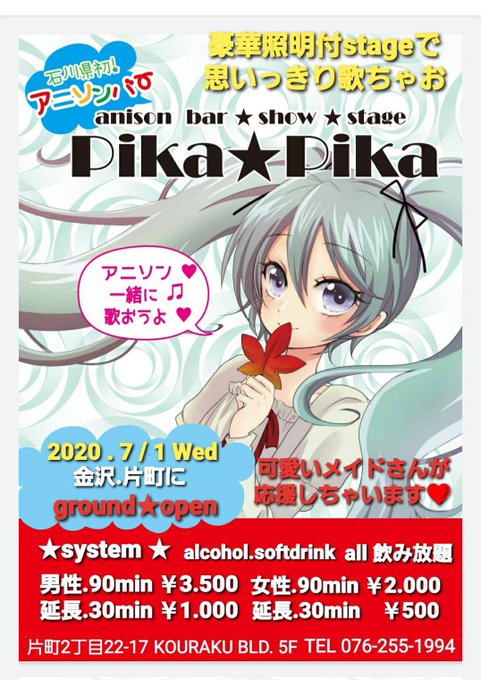 #PikaPika #金沢 #片町 #女性一人でも安心 #アニソンバー開業 #ダンサー募集中 #アイドル募集中 #アニソンバーキャスト募集 #アニソン歌手募集 #学生バイト募集 #アニソンダンサー募集中 #アルバイト募集 #アルバイト募集中 #アニソンバースタッフ募集 #拡散希望