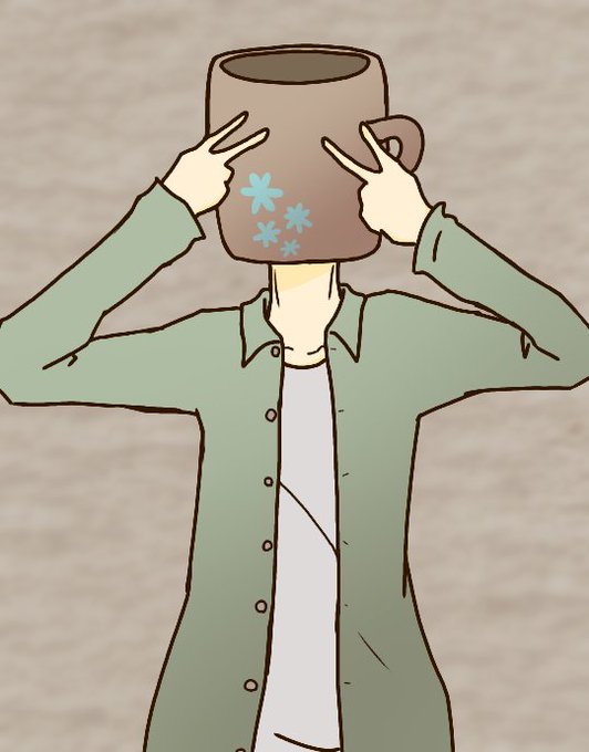 傘糊(@nasubimiss )と互いの絵をリメイクするタグやりました! 傘糊さんオリジナル(左) ぴケリメイク(右) コップ異形頭可愛いです!