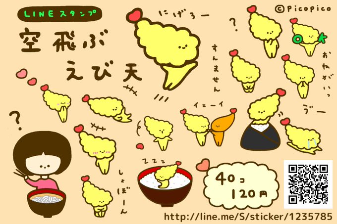 LINEスタンプ「空飛ぶえび天」販売中!https://t.co/9Ytfnuohb7 #LINEスタンプ