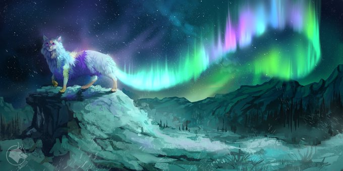 #fantasyart #northernlights #cat #digitalart #digitalpainting #landscapepainting #furryart