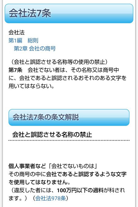 昨日1話を見直してて気になったのはオニナッツの名刺。株式会社ではないのに「株式会社」の商号を使用すると会社法違反(罰則あり)の恐れがあるんですが大丈夫ですよね…