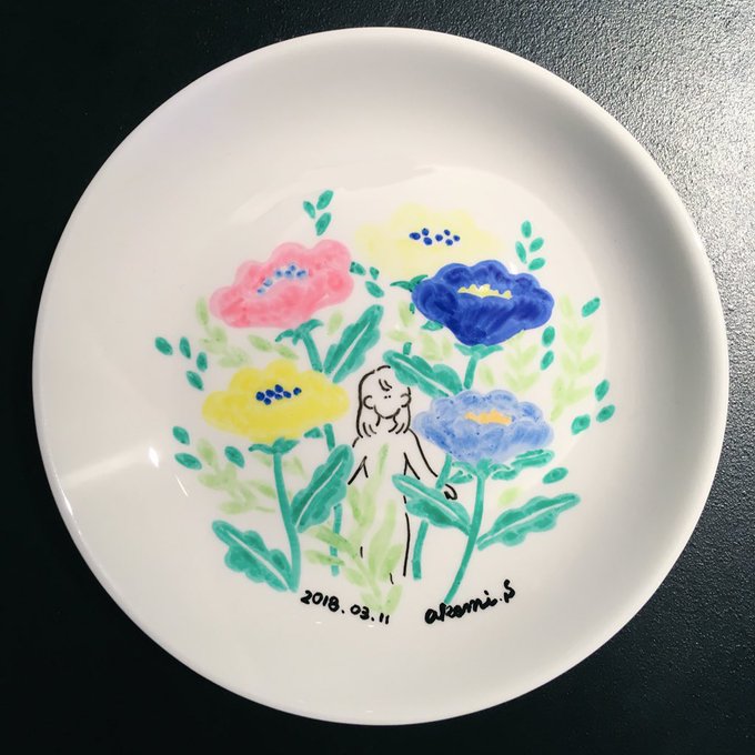 2日間お皿にドローイング、ありがとうございました!ラストのお客様に描いたのは、わたしの過去作をセルフオマージュしたものでした。