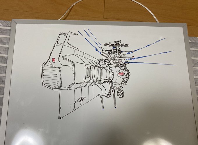 途中経過とアナログ線画も載せておきます。 実はアナログ段階と艦橋形状がかなり変わってます