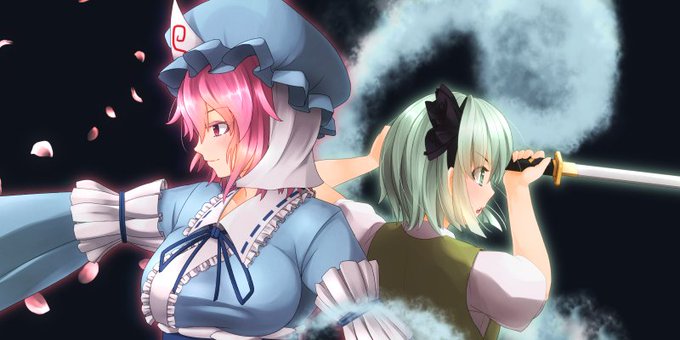 #画像フォルダから左を向いてる画像と右を向いてる画像を戦わせろ 用に追加でゆゆさま描いたんだけど、背中合わせのほうがよさげだったので合わせてみた。 全体はpixivへ #東方