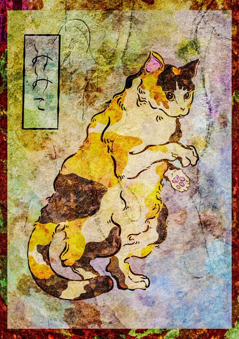 ついにタトゥー風、日本画風、色彩ブチ撒けゲロ、保有してる3つの絵柄での猫ちゃんイラスト依頼コンプリートした!!