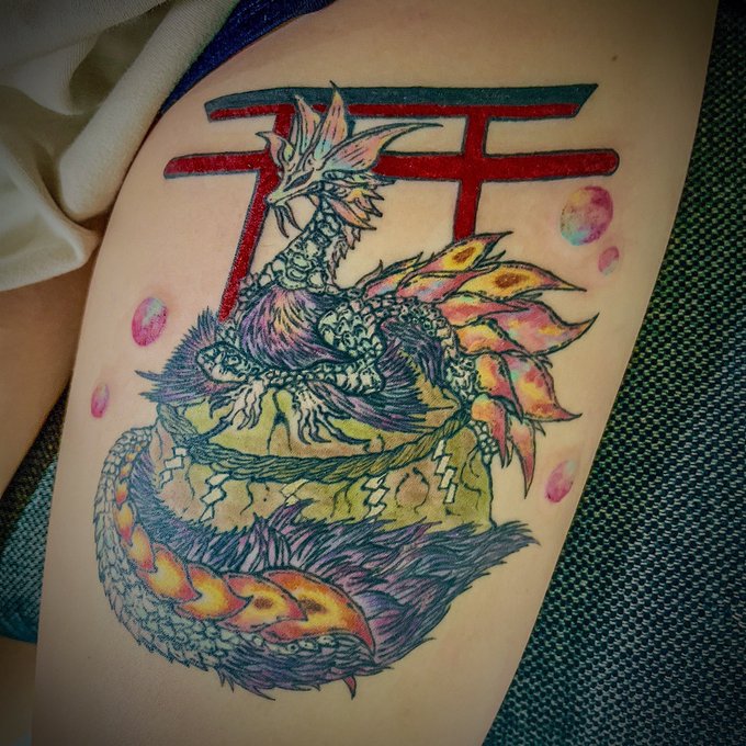 自分が趣味絵で描いたタマミツネをタトゥーにしてくれた人がおった! 顔横がいいとのことで加筆いたした! ワシの仕事以外の過去絵は彫りたい〜って人いたら相談してね〜!!