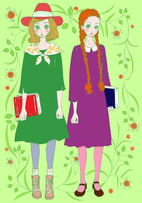 #イラスト #女の子 令和でも平成でもなく昭和風ファッション。