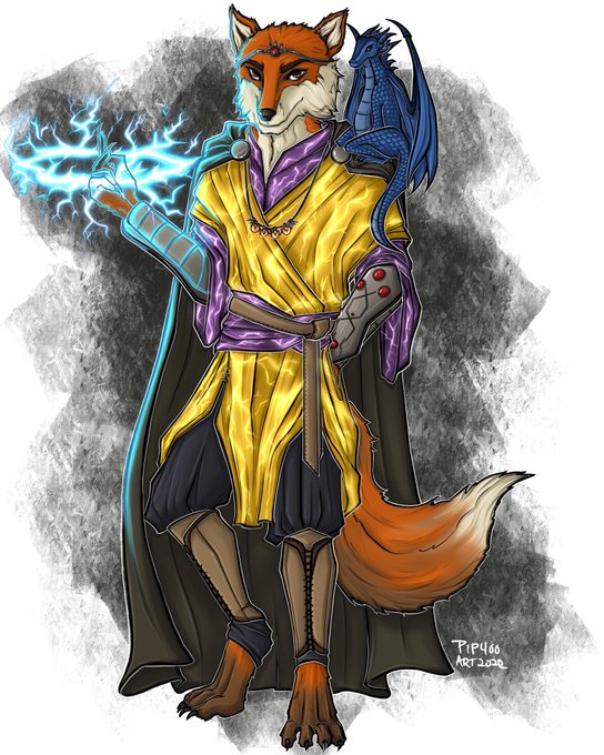 All done with this commission of a #kitsune #sorcerer and his #psuedodragon friend!