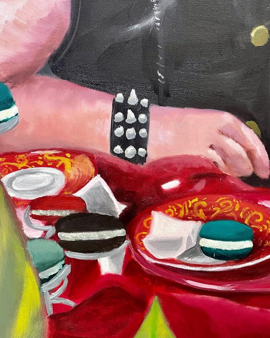My painting final is complete!! This is a 36’’ by 48’’ oil painting of the one and only @thomassanders from his Apocalyptic Tea Party photoshoot!! This took about 3 weeks of on-and-off work and is seriously massive. Super proud of myself for pulling this off! ❤️