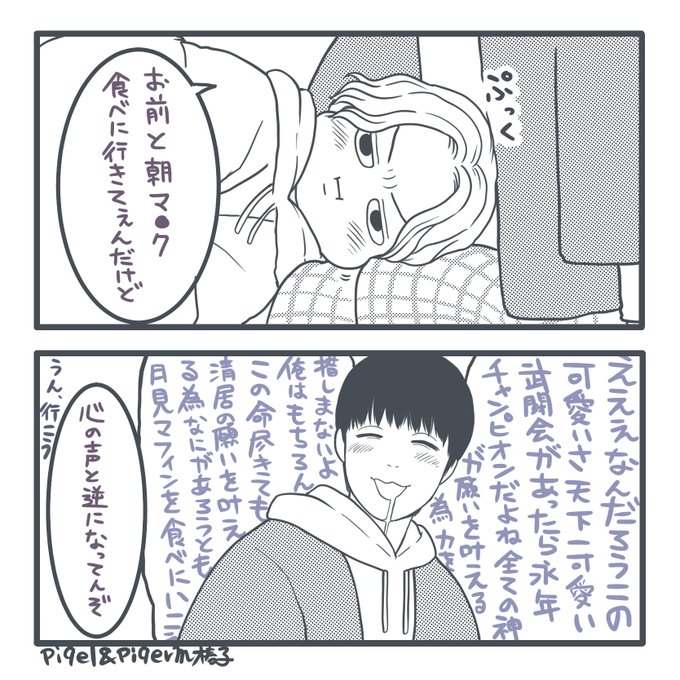 平良と清居を描いてると癒されます。ちょっと描けない期だったんですが、液タブのペンのフェルト芯を交換したら描けるようになったのでうそでしょ!???ってなってる。(ましろ)