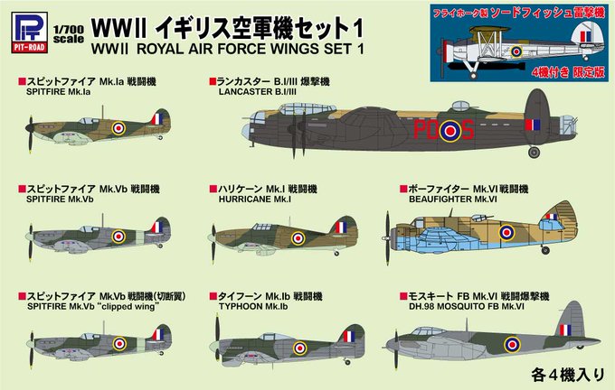 2020年3月出荷予定の新製品「イギリス空軍機 スペシャル ソードフィッシュ×4機付き」 https://t.co/pcZzFpY6JI と「ザ・ウエストウィングス2 スペシャル メタル製A-1スカイレイダー×3機付き」 https://t.co/DqEF9chQld (ともに1/700プラモデル、限定品)の製品情報を、弊社WEBサイトに追加しました。