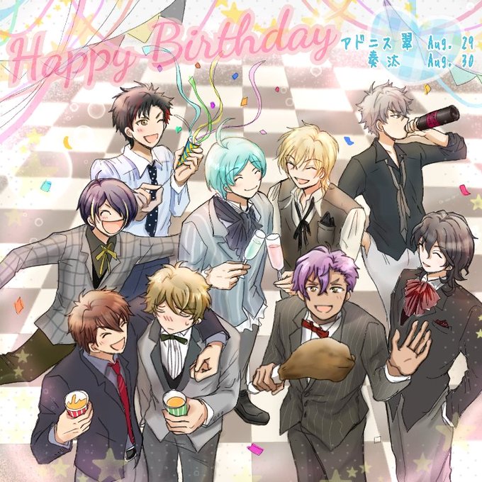 アドニス、翠くん、それから1日早いけど奏汰くんも、みんな一緒におめでとうー!🎊🎂🎉🎉🎉 #乙狩アドニス生誕祭2016 #高峯翠生誕祭2016 #深海奏汰生誕祭2016