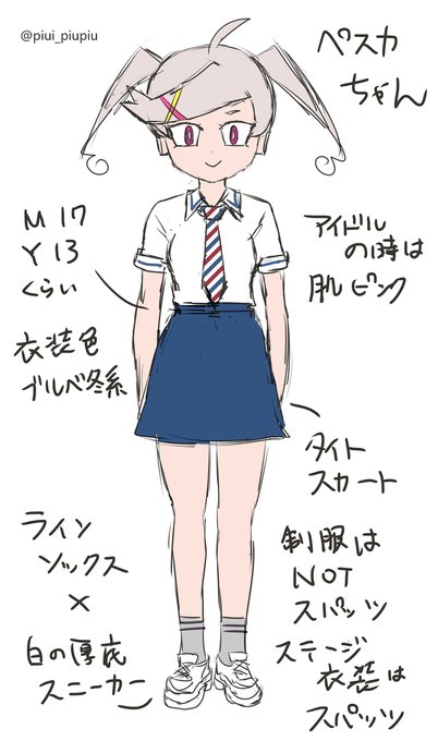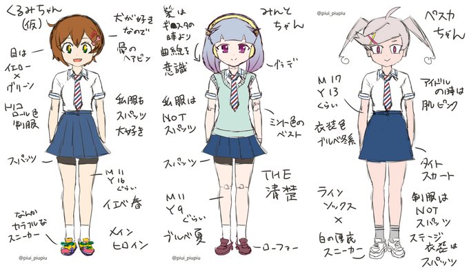 自作ゲーム(予定)用、ヒロイン達の制服キャラデザのラフ。