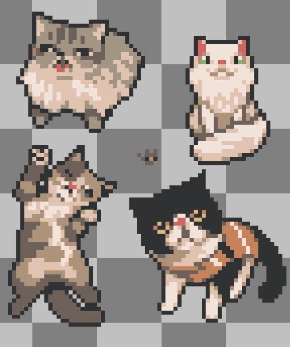 Doing a 100 cats challenge c: heres my first four #pixelart #ドット絵