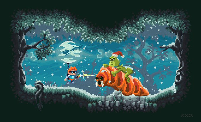 Merry Christmas everyone and happy gaming holidays. #BobbyBombastic #Screenshotsaturday #pixelart #indiedev #Grinch