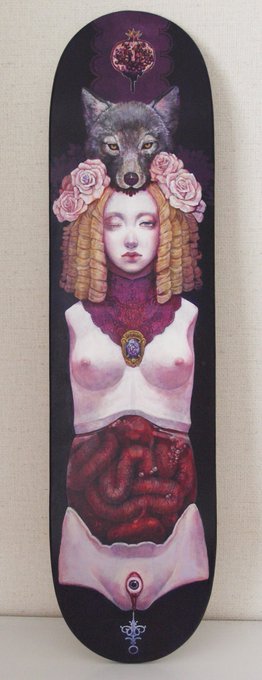 昨年のゴアデッキ「少女のオブジェ」も持って行きます(販売可/30000円)。デッキにアクリルで直書きしたものです。