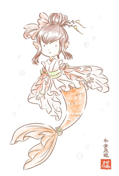#今月描いた絵を晒そう あと3日しかないなんて… 7月は金魚姫ちゃんばかり描いてた。