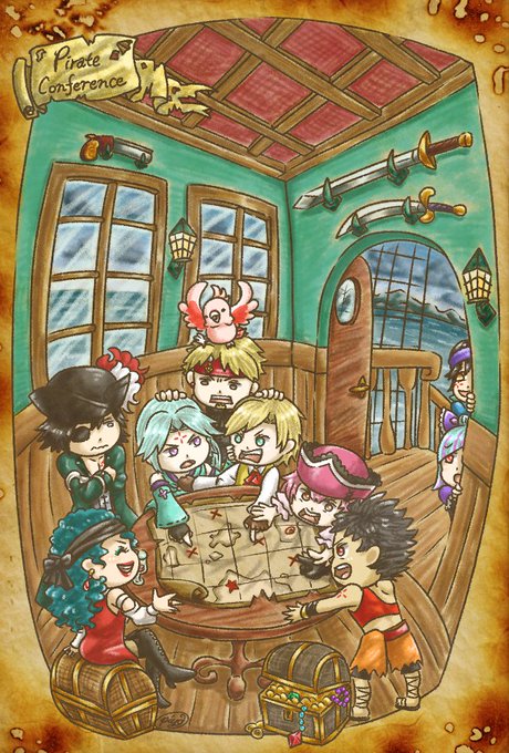 ちびキャラしか描いてないんだけど。でも背景結構描いたから充実してたかも。あ、3枚目だけうちよそコラボ。