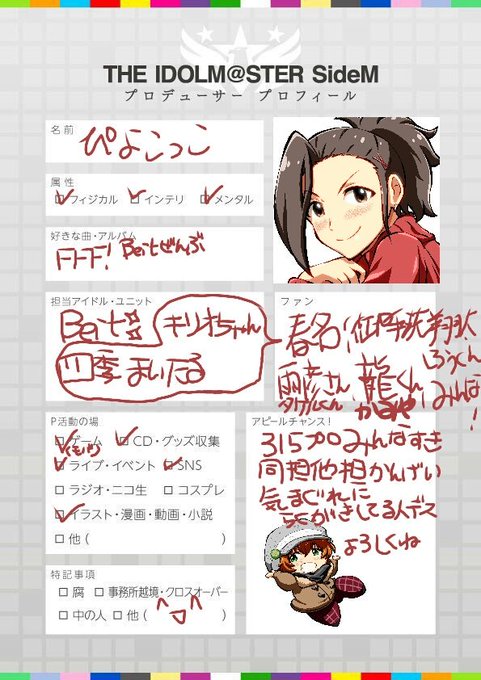 #MマスPプロフィール #みなさんのプロデューサー名刺見せてください サーライ福岡目前ですね👑✨ ぴよこっこさんと 名刺交換してくだサイ🎼🎵🎶 繋がりタグは固定にあるから付けてない( ˇωˇ )