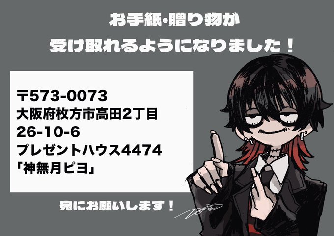ついにお手紙等が受け取れるようになりました🧠✉️ 送り先↓ 〒573-0073 大阪府枚方市高田2丁目26-10-6 プレゼントハウス4474「神無月ピヨ」 までお願いします🙏