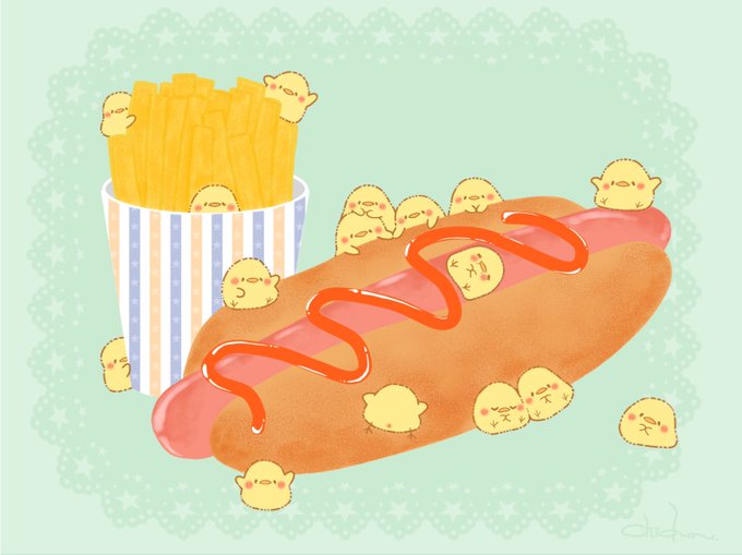 ホットドッグとポテト #創作クラスタ #イラスト #ひよこ