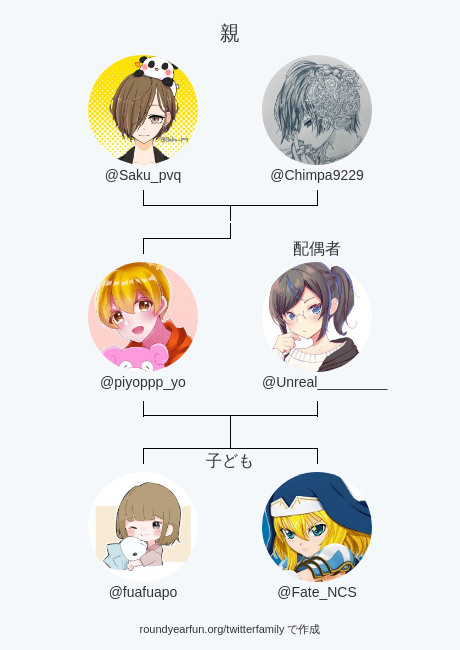 私のTwitter家族: 親: @Saku_pvq @Chimpa9229 配偶者: @Unreal_________ 子ども: @fuafuapo @Fate_NCS via https://t.co/rCDUujHjiV ⠀