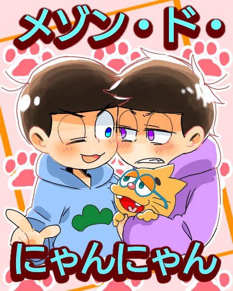 @rsk_kun るしきさんお誕生日おめでとうございます~!🎉🎉という訳で(?)どうして欲しいか言ってほしい次男と察しろと目で訴える四男と注文取りに来たのに見つめあって微動だにしない二人を不思議そうに眺めるあべななちゃん描きました!!るしきさんにとって素敵な一年になりますように!