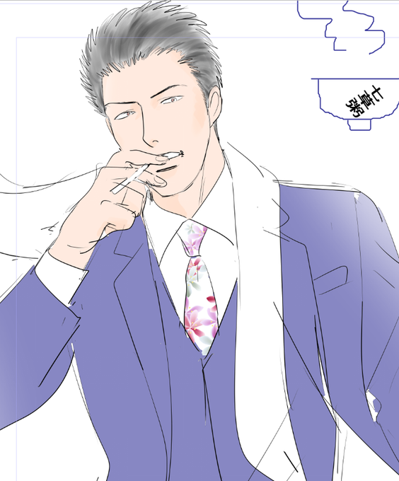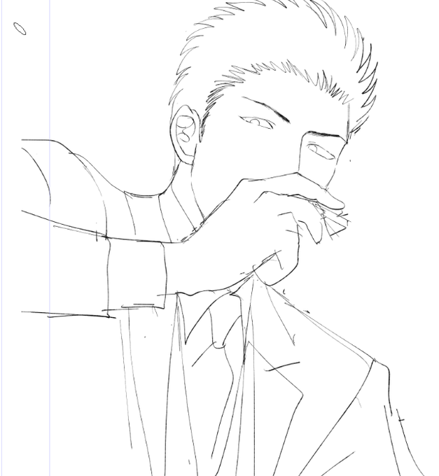 単なる棒立ち絵ですが一応アレコレ考えたけどこんなポーズつけると違う人みたいになるよねということでボツとなり、、深見は33・4歳のつもりで描いてたかな?
