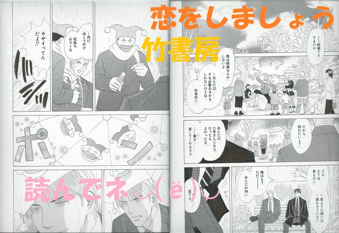 リプライ頂き判明しました竹書房さんの「恋をしましょう」です!その辺の原稿のみなぜかすぐ出せる棚に陳列されてます、、これはDV野郎BLですがピエロデザインの傘非常にお気に入りです!読んでネ!DVだけど色々あってハッピーエンドであんしん!!