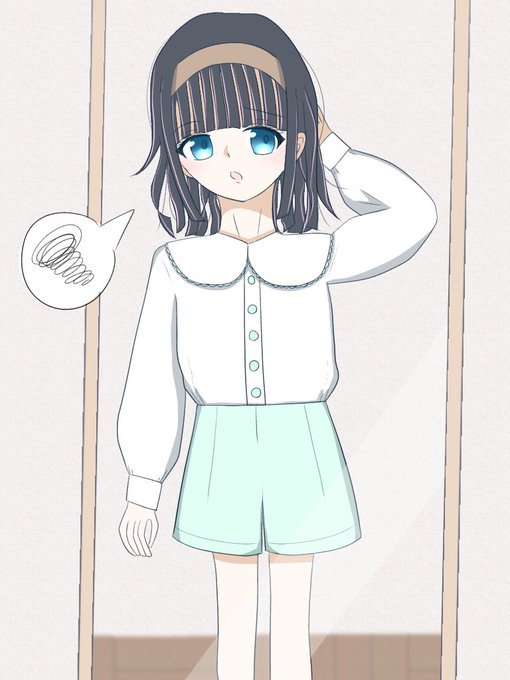 お出かけのお洋服が決められない+梅雨の湿気で髪もうまく巻けなくてしょぼんな茅乃。茅乃は流されやすさがカンストしてるので、私服もそのときの流行りに全力で便乗するかショップ店員さんに勧められるがままに買っています👗