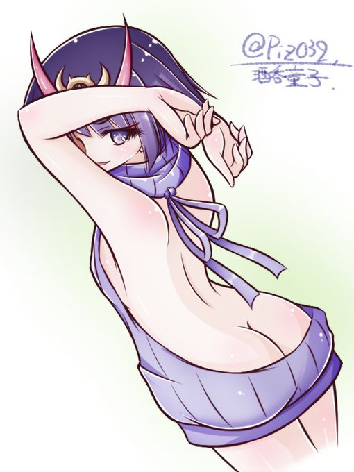 最近お世話になってる酒呑童子に例のセーター着せたくなって描いた 使ってると愛着湧くってあると思います ワンチャン露出下がってる可能性について(´・ω・`) #FGO