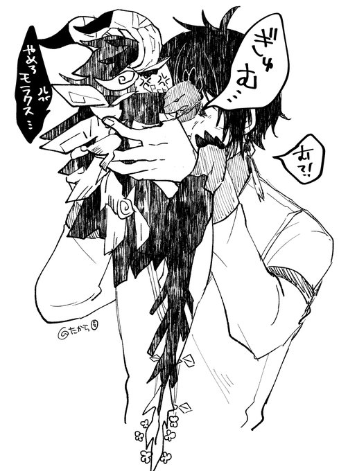 バグで小さくなった若陀君を猫かわいがりしようとして拒否られたモラクスです。