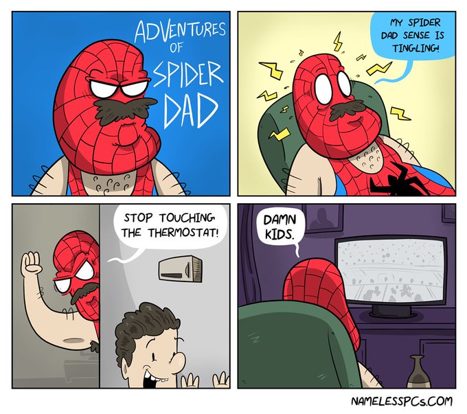 Spider Dad, spider dad, don't make too much noise or he'll get really mad. More comics at https://t.co/MnVvV7roS8