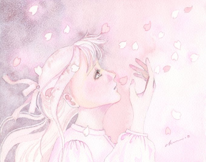 【桜色、纏う】 #水彩画 #透明水彩